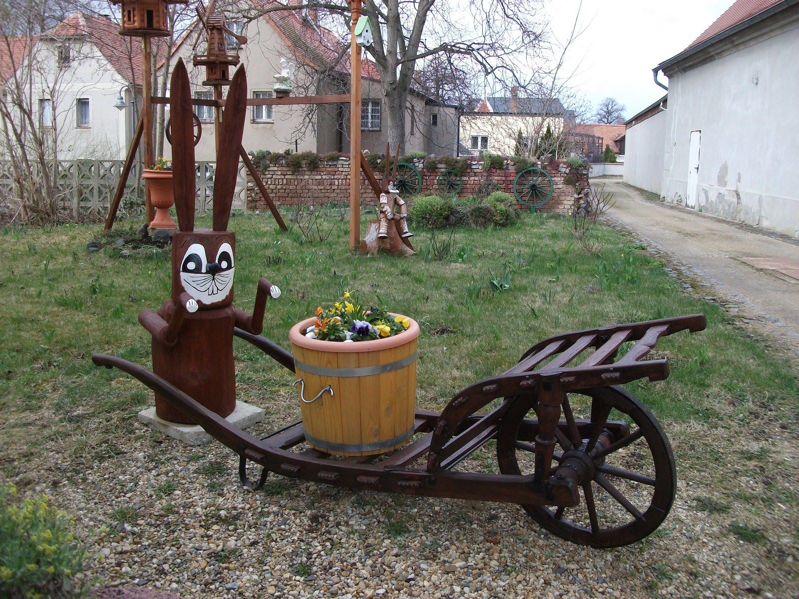 | Dom przysłupowy z rodzinką słomianych zajączków. |