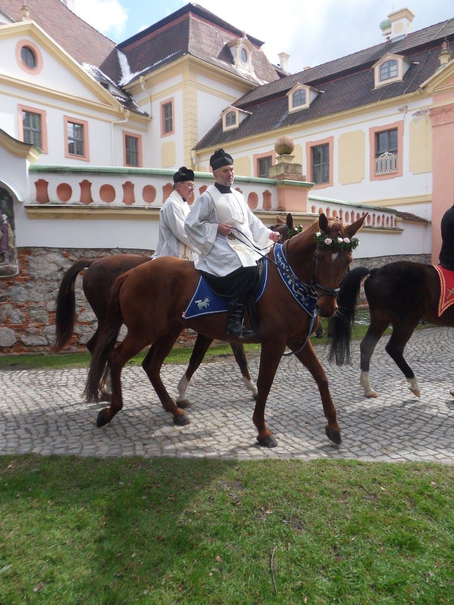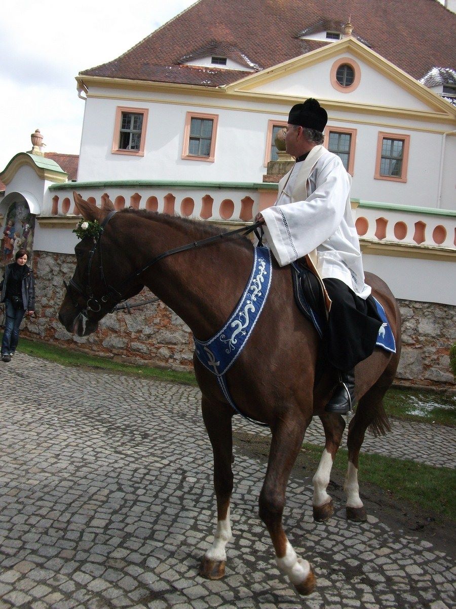 "Coroczne procesje konne mają długą tradycję, sięgającą 1541 roku. Górnołużyczanin Abraham Frencel żyjący na przełomie XVII i XVIII wieku odnotował, że: „Mężczyźni w sobotę przed Wielkanocą nie idą do łóżek, ale gromadzą się w jednym domu, aby w nocy, śpiewając wielkanocne pieśni, iść przez pola”. W procesji, jaka wyruszyła w 1790 roku z Kulowa, jeźdźcy wielkanocni po raz pierwszy założyli czarne fraki i cylindry. Choć zwyczaj wiosennego objeżdżania gospodarstw i wiosek wywodzi się z pogańskich czasów, dzisiaj – podobnie jak zdobienie pisanek, święcenie wody i wiele innych tradycji – stanowi integralną część chrześcijańskiego święta Zmartwychwstania. Uczestnicy procesji konnej nie traktują jej jako elementu folkloru, lecz jako całodzienną modlitwę, manifestację wiary oraz przynależności narodowej.Setki jeźdźców noszą identyczne stroje: czarne fraki i cylindry, białe koszule i rękawiczki, do tego czarne muszki lub krawaty. Ten, kto po raz pierwszy bierze udział w procesji otrzymuje uprzednio poświęcony zielony wianuszek. Ten, kto jest już weteranem, może przypiąć sobie do klapy srebrny mirt. Konie są starannie wypielęgnowane i przepięknie wystrojone wstążkami, kwiatkami, paciorkami. W procesji niesie się kościelne flagi, emblematy oraz figury Zmartwychwstałego. Po drodze jeźdźcy, zwani po serbołużycku křižerjo („ci, którzy noszą krzyż”, „krzyżowcy”) śpiewają pieśni i głośno odmawiają modlitwy. Widok odświętnej demonstracji wiary katolickiej i łużyckiej świadomości narodowej nie może nikogo pozostawić obojętnym. Nie mająca końca, uroczysta i rozśpiewana kawalkada prezentuje się naprawdę imponująco."
