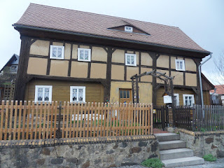 Wracamy.jedziemy tą samą drogą,którą przyjechaliśmy.Chcemy zatrzymać się w Sulikowie,by popatrzeć na tamtejsze domy przysłupowe.Mi się wydawało,że kiedyś było ich trzy,ale okazuje się,że pamięć ludzka jest zawodna.Dobrze,że te dwa,które zostały są odpowiednio odnowione i utrzymane.