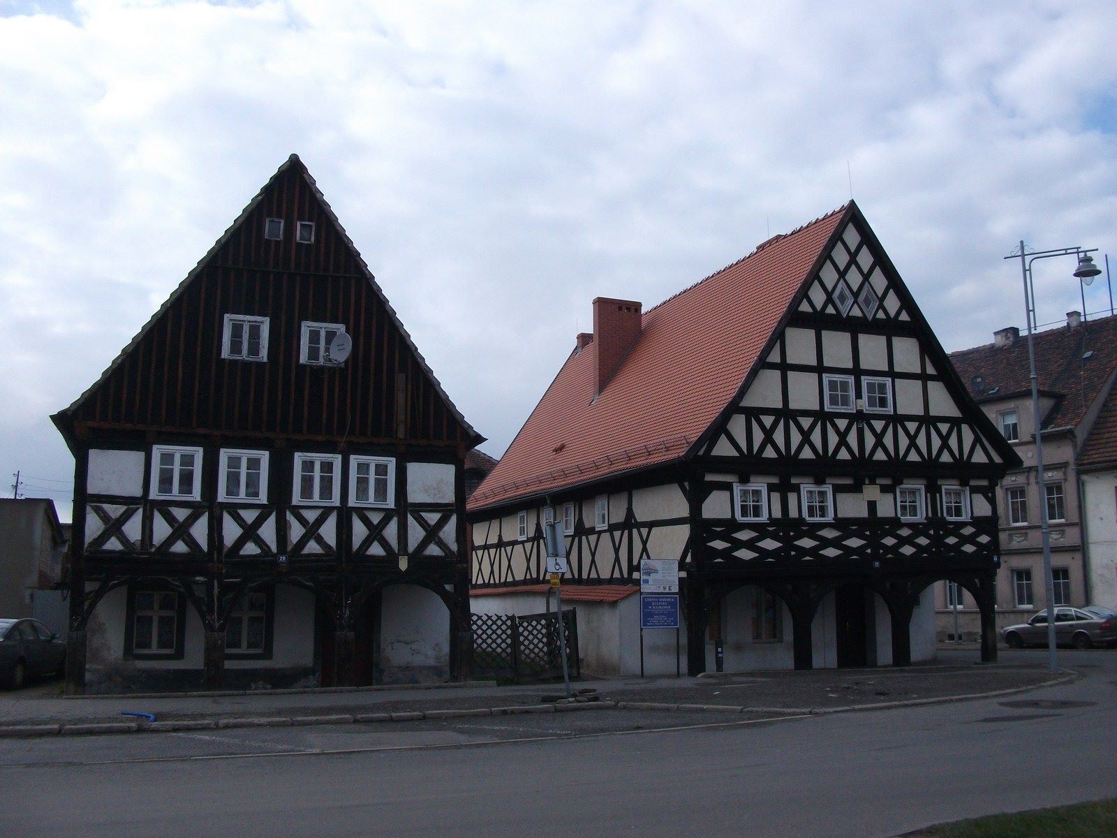 | Spojrzenie na rynek w Sulikowie z podcienia domu przysłupowego. |