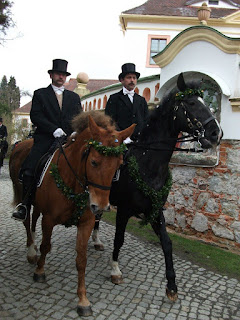 W tym roku konni „siewcy dobrej nowiny” wyruszyli w drogę po raz 384. Jeźdźców było około stu(myśmy naliczyli 92 konie), wszyscy elegancko ubrani we fraki, cylindry i błyszczące od pasty jeździeckie buty, przyozdobiono również konie.