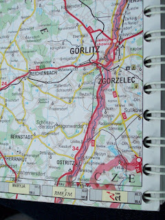 Udało nam się dogonić Procesję i za nią doszliśmy skrótem,nad Nysą do klasztoru cysterek Marienthal.Jesteśmy zaskoczeni tłumem zgromadzonym na placu przed klasztorem.Procesja kilkakrotnie okrąża plac,ze śpiewem i modlitwą,przy wtórze trąbek.W pewnym momencie,tłum obok Radka rozstąpił się i na plac obok figury Chrystusa wjechało dwóch księży katolickich.Tu odbyła się modlitwa i błogosławieństwo wszystkich przybyłych.
