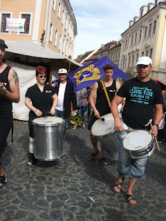 W Görlitz jest dość spokojnie,ale i tu widać pełno średniowiecznych straganów,rycerzy,mieszczan i szlachcianki w strojach z tamtej epoki.Na placu koło ratusza rozgościła się scena,na której dawni grajkowie umilają swą muzyką czas.My na chwilę też przystajemy i wsłuchujemy się w rozbrzmiewającą dookoła muzykę.Po jakimś czasie ruszamy dalej,zaglądając na stragany i do rzemieślników.