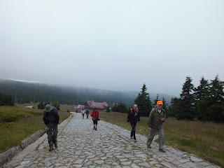 Powoli schodzimy do miejsca,gdzie jeszcze kilka lat temu stało schronisko "Petrova bouda". Obecnie teren jest uprzątnięty,widać że jakieś prace są tu prowadzone,bo gdy byliśmy tu w tamtym roku,to ruiny straszyły swym wyglądem...