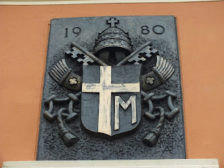 Przechodzimy przez miejscowość,zaglądając wszędzie tam,gdzie dostrzegamy coś ciekawego,mijamy rzeźbę Papieża i idziemy najpierw zobaczyć Grotę Lurdzką.