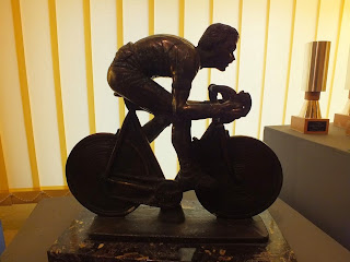 I tak powoli wkraczamy w świat wielkiego kolarza.Są tu Jego medale,puchary,dyplomy,koszulki,proporczyki,legitymacje itp...Można dostać oczopląsów od zgromadzonych tu pamiątek.Oglądamy wszystko po kolei,robiąc niewiarygodną ilość zdjęć.