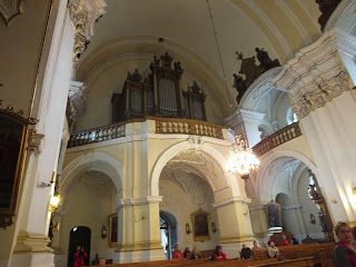 Po obejrzeniu wszystkich kapliczek,idziemy szerokimi schodami do bazyliki św.Anny.Wchodzimy do środka,trwają właśnie uroczystości ślubne.Stajemy na samym końcu i mimowolnie uczestniczymy we mszy,dyskretnie rozglądając się i robiąc zdjęcia.