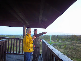 Po wypiciu piwa i odpoczynku,stwierdzamy,że mgła się rozwiała,bo spoglądając w okno dostrzegamy błękitne niebo.Idziemy więc na zewnątrz zrobić sobie sesję zdjęciową i dopiero po niej kupujemy bilety i wjeżdżamy windą na taras widokowy.