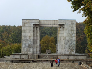 Zaglądamy do klasztoru,gdzie dostajemy pieczątkę i teraz spokojnie wędrujemy krużgankami,wczytując się w tablice informacyjne i robiąc zdjęcia.Wchodzimy do niewielkiego sklepiku z dewocjonaliami,kupujemy kilka pamiątek (dla mojej Mamy i Tatki Radka) i wychodzimy na długie schody.Schodzimy nimi ku kramom z pamiątkami.Zaglądamy za czymś szczególnym i innym niż u nas dla Macieja-kupujemy "Szkloki" i powoli idziemy w kierunku autobusu.