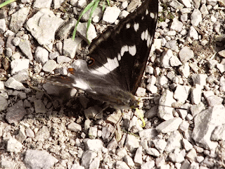 Po nasyceniu wzroku pięknymi krajobrazami,posileniu się i odpoczynku,żegnamy się z młodymi Czechami i zaczynamy schodzić.Niespiesznie wracamy.Podjadamy po drodze jagody i robimy sobie ciut dłuższą przerwę na sesję zdjęciową z motylem w roli głównej.Mieniak tęczowiec pozował nam do zdjęć przechadzając się środkiem leśnej drogi.