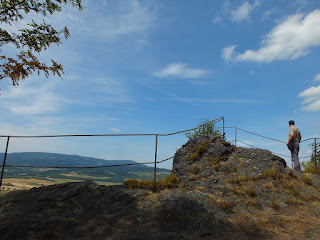 Zaglądamy na drugą stronę ścieżki,gdzie znajdują się skały z kamienną tablicą z 1906 roku.Nie ma tu jednak niczego więcej,więc próbujemy dalej przy punkcie widokowym,gdzie spotykamy Pana z różańcem w dłoni...witamy się z Nim,chwilkę rozmawiamy i rozchodzimy się....
