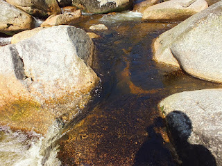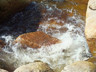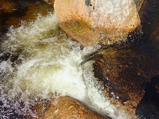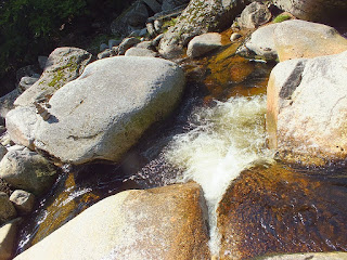 Po nazbieraniu sporej ilości grzybów,schodzimy nad samą wodę.Mamy swoje ulubione miejsce,gdzie płynąca woda szemrze głośno,po kamieniach i między nimi,a kolor jej jest złoty lub bursztynowy,w zależności jak padają promienie słoneczne :)