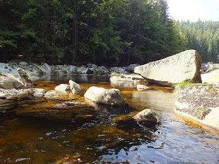 Bez pośpiechu wędrujemy lasem,zbieramy grzyby,robimy zdjęcia,rozkoszujemy się ciszą panującą dookoła i niespiesznie docieramy do Izery.Wędrujemy brzegiem rzeki,cieszymy się chłodem,który daje woda i cień wysokich drzew.