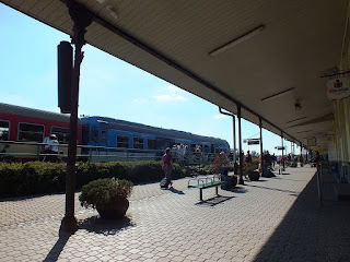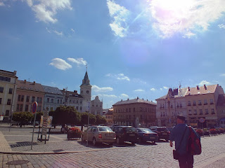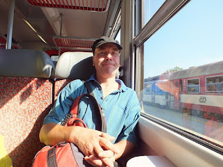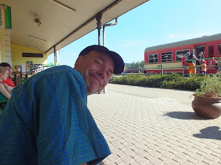 Dość szybkim tempem wędrujemy prawie pustymi ulicami miasta i dzięki temu na stacji kolejowej jesteśmy ze sporym zapasem czasowym.Coś nam się ubzdurało z godziną odjazdu pociągu z miejscowości Malá Skála i kiedy na rozkładzie jazdy pociągów nie znajdujemy takiego odjazdu,dzwonię do Wiktora i pytam się o której ma być pociąg w Malej Skáli? Odpowiedź Wiktora nas uspokaja-mamy czas na jedzenie i piwo.Siadamy na ławce w cieniu-słoneczko dość dało nam się dziś we znaki-wyjmujemy kanapki i butelkę piwa-dużą butelkę :)