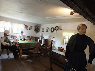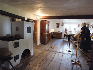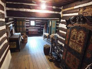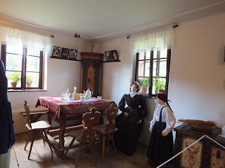 Przechadzamy się bez pośpiechu po izbach na parterze.Oglądamy wszystko,robimy zdjęcia i wchodzimy po drewnianych schodach na piętro.Tu jest więcej izb niż na parterze.Zaglądamy do każdej.Oglądamy stare sprzęty domowe,robimy zdjęcia i śmiejemy się,gdy Radek,mimo ostrzeżenia o niskich stropach,kilka razy uderza głową w belki.Ot zapomniał się....