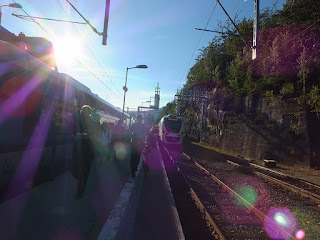 Po takim marszu,kanapki smakują rewelacyjnie,a piwo jest ambrozją :) Posileni i napojeni,odpoczywamy jeszcze chwilę,a kiedy zostaje zapowiedziany nasz pociąg,zbieramy swoje rzeczy i idziemy na peron.Tu czekając dostrzegamy dość tęgiego Pana,w czarnej koszulce z napisem "Nás krásnych je málo".Ukradkiem robię Mu zdjęcie,bo szalenie podoba mi się napis.Kiedy przyjeżdża nasz pociąg,wsiadamy do niego,zajmujemy dodatkowo dwa miejsca i jedziemy po naszych rajdowiczów,ruszając już w drogę powrotną.
