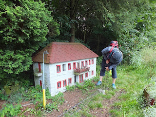 Podróż mija nam szybko i bezproblemowo.W Szklarskiej Porębie Górnej przesiadamy się do czeskiego pociągu,jadącego do Liberca.My oczywiście nie jedziemy do Liberca,a jedynie do Tanvaldu.Tu mamy kolejną przesiadkę.Z Tanvaldu jedziemy do Železného Brodu.I znów się przesiadamy,tym razem do pociągu jadącego do Turnova.Nasza jazda kończy się w miejscowości Malá Skála.Stąd rajdowicze ruszają na dzisiejszą wędrówkę.My również,tyle że pójdziemy w innym kierunku.Zanim ruszymy,robimy sobie krótką sesję zdjęciową z miniaturką stacji,a po niej powoli wędrujemy wąskimi uliczkami,kierując się do naszego pierwszego celu.