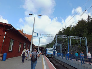 Wstajemy odpowiednio wcześnie,na spokojnie zjadamy śniadanie,pijemy kawę,robimy kanapki i pakujemy plecaki.Kiedy jesteśmy gotowi,ruszamy w kierunku stacji kolejowej.Tu spotykamy sporą grupę znajomych,witamy się,rozmawiamy i dobieramy w piątki.Z nami jest Sylwia i dwójka młodych ludzi-Iza i Leszek-rodzina Krzysztofa i Ani.Kupujemy bilety ZVON i idziemy na peron,gdzie czekamy chwilkę na pociąg,a kiedy przyjeżdża,wsiadamy do niego i jedziemy do Szklarskiej Poręby Górnej.