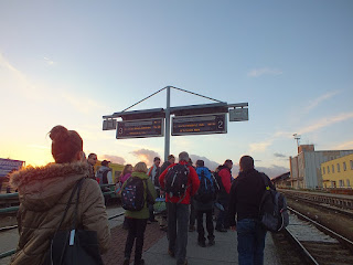 Wstajemy odpowiednio wcześnie,jemy śniadanie,pijemy kawę,robimy kanapki i pakujemy plecaki,a kiedy jesteśmy gotowi,ruszamy w kierunku stacji kolejowej.Po drodze spotykamy Agnieszkę i razem z Nią idziemy na stację.W kasie kupujemy grupowy bilet ZVON i kiedy mamy już komplet wędrujemy na peron,z którego odjeżdżamy pociągiem do Szklarskiej Poręby Górnej.Tu mamy pierwszą dziś przesiadkę.Kolejne mamy w miejscowościach Tanvald i Železný Brod.Wszystko działa sprawnie,więc bez problemu docieramy do miejsca rozpoczęcia dzisiejszej wędrówki.