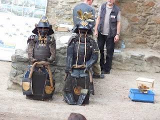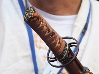 Po bardzo długiej sesji zdjęciowej na wieży,schodzimy na dziedziniec.Tu akurat zaczyna się pokaz mieczy.Pan Hiroshi Kojima,licencjonowany kowal Cesarstwa Japonii,sam osobiście pokazuje zgromadzonej publiczności różne miecze,opowiadając przy okazji o nich.Oglądamy je,podziwiamy i robimy zdjęcia.
