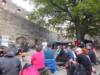 Na dziedzińcu zamkowym jest nawet sporo ludzi,ale tłumów nie ma.Akurat gdy weszliśmy trwa licytacja przedmiotów na rzecz akcji "Zerwijmy łańcuchy".Kasztelan Zamku sam osobiście pokazywał wszystkim zainteresowanym przedmioty przeznaczone na licytację.My przechadzamy się,robimy zdjęcia,witamy ze znajomymi i oglądamy wszystko.Aukcja troszkę się przedłuża,a występ Gościa lekko opóźnia,więc postanawiamy iść na wieżę.