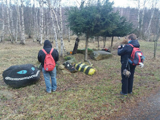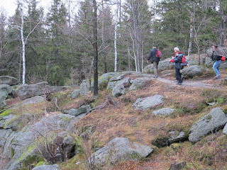 Wędrujemy leśną dróżką.Zieleń mchów i rudość leżących na ziemi liści sprawiają wrażenie jesiennego dnia,a nie zimowego.Nawet temperatura powietrza jest plusowa.Idziemy niespiesznie,rozmawiamy,robimy zdjęcia i cieszymy się z dzisiejszego spotkania :) I tak powoli docieramy do "Kociołków".