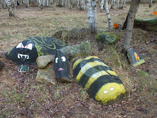 Kiedy docieramy do przystanku,okazuje się,że mamy ponad godzinę do autobusu,postanawiamy więc iść dalej-do Jagniątkowa.Dróg do wyboru mamy kilka,ale my wybieramy kierunek przez "Trzy Jawory".Powoli wędrujemy spokojnymi uliczkami Michałowic.Robimy zdjęcia drzewom,pomalowanym kamieniom i domom.Kiedy jesteśmy już w lesie,wiatr jakby odpuścił.Cisza panuje dookoła nas,ale kiedy spoglądamy w górę,dostrzegamy jak dynamicznie przemieszczają się chmury po błękicie nieba.Tam to dopiero wieje.