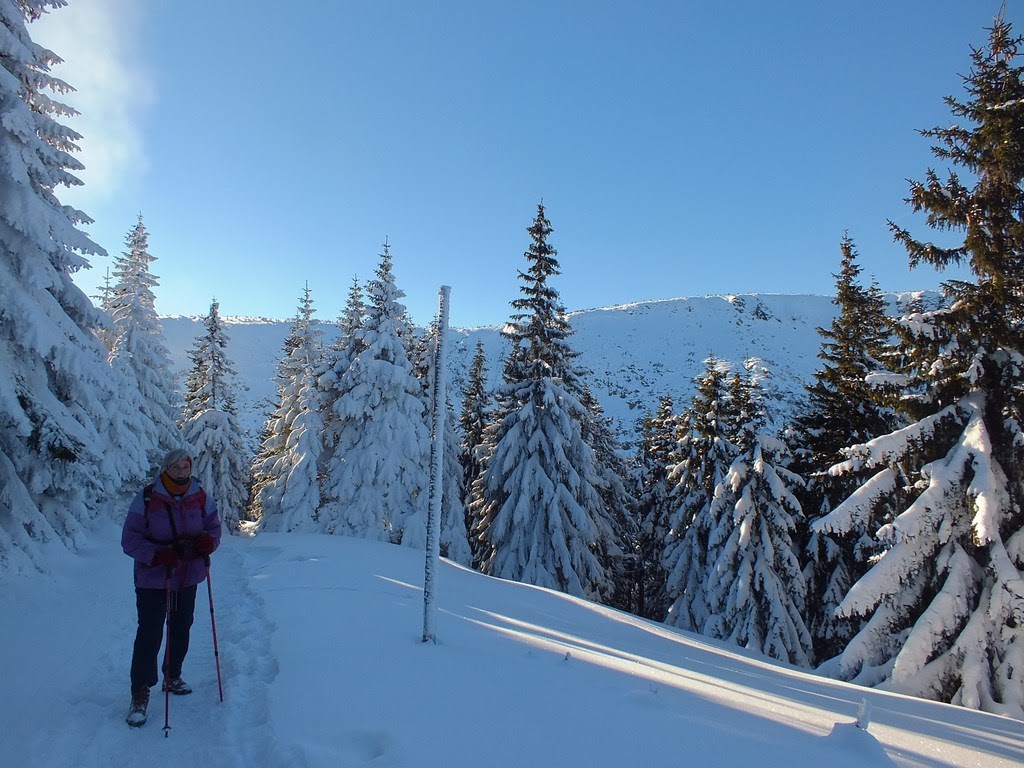 Na szlaku niewielu turystów,ale to nie dziwi,wszak dziś dzień roboczy,dość wczesna pora i mróz na dokładkę.Dzęki temu wszystkiemu cisza i spokój dookoła panuje.