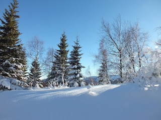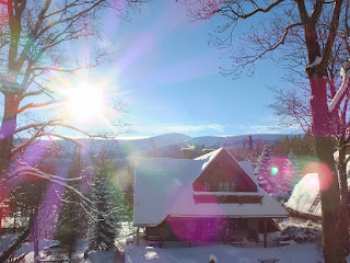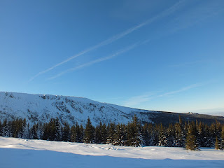 Od poniedziałku mam kilka dni urlopu,ale generalnie siedzę w domu,bo za oknem nisko wiszące,ciemno-szare chmury,z których przez cały czas sypie się śnieg,nie zachęcają do wyjścia,więc piszę,nadrabiając zaległości.Jednak gdy dziś ujrzałam błękitne niebo,zaczęło mnie nosić.....