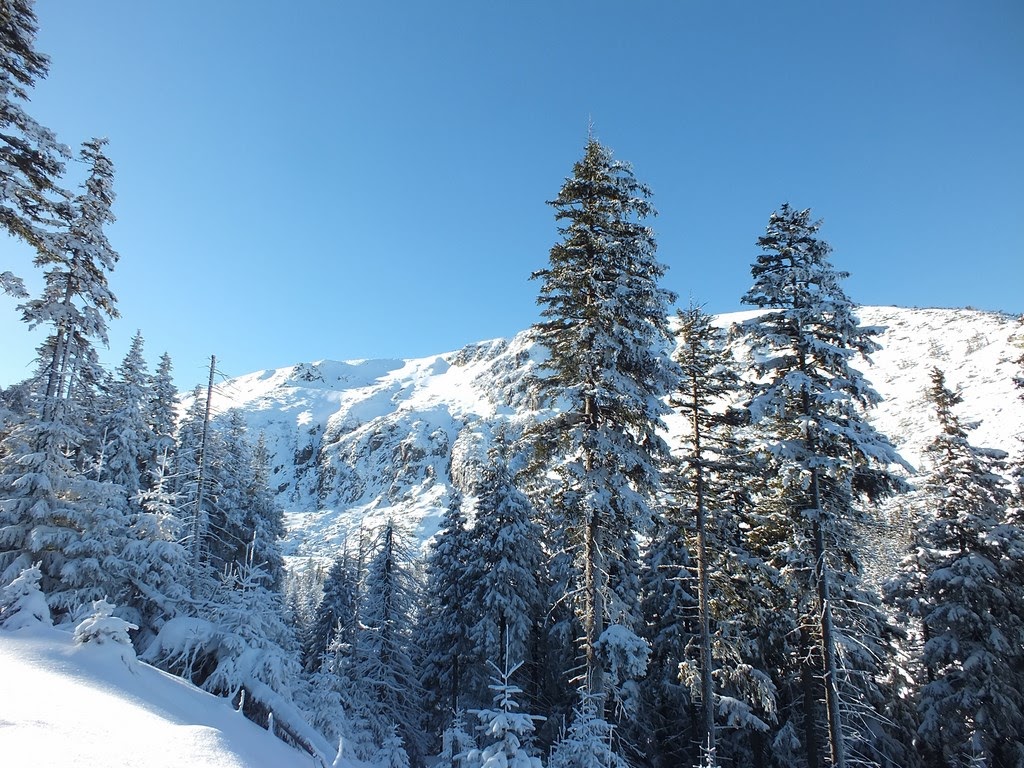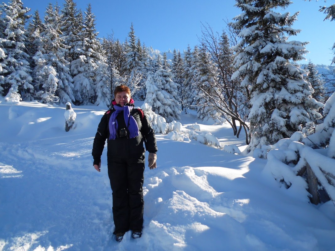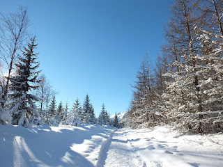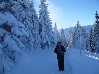 Po spacerze dookoła świątyni i całemu mnóstwu zdjęć,powolutku z Sofijką ruszamy w Góry.Nie spieszymy się,mamy sporo czasu,więc rozkoszujemy się pięknem,które nas otacza.Śnieg skrzypi pod nogami,skrzy się w słońcu "diamencikami" i "kryształkami" radując nasze oczy :) Nad naszymi głowami zawisł lazur nieba,a dookoła nas panuje cisza :) Czyż można tym się nie cieszyć???
