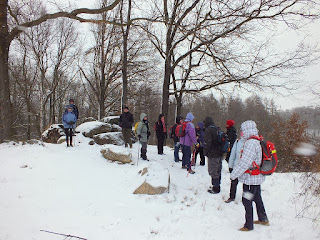 Powoli,spacerowym krokiem zmierzamy ku Polanie Śledzikowej.Przystajemy co jakiś czas na zdjęcia i krótki odpoczynek.Droga w śniegu ciutkę męczy,ale i sprawia frajdę.Miał byś dziś siarczysty mróz,a tu sypie śniegiem.Oczywiście mrozik też jest,ale nie taki,jaki był zapowiadany.Cieszymy się że nie wieje,bo byłoby o wiele zimniej.Kiedy jesteśmy niedaleko naszej polany,mija nas samochód-to Krzystof z Anią-ucieszył nas ten widok niezmiernie :) Zgadujemy,że jadą na Polanę Śledzikową,więc tym bardziej się radujemy.Zbliżając się do miejsca biesiadowania,zaczynamy zbierać suche gałęzie na ognisko i tak objuczeni,docieramy na zasypaną śniegiem polanę.