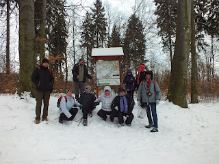 Niespiesznie wędrujemy leśnymi drogami.Robimy zdjęcia,rozmawiamy,śmiejemy się i cieszymy z dzisiejszego spotkania.Zatrzymujemy się na chwilę przy tablicy z mapą.Przerwa w marszu na małe co nieco,zdjęcia i pogaduchy.
