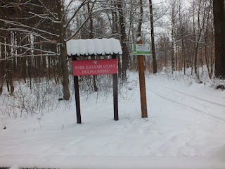 Powoli,spacerowym krokiem zmierzamy ku Polanie Śledzikowej.Przystajemy co jakiś czas na zdjęcia i krótki odpoczynek.Droga w śniegu ciutkę męczy,ale i sprawia frajdę.Miał byś dziś siarczysty mróz,a tu sypie śniegiem.Oczywiście mrozik też jest,ale nie taki,jaki był zapowiadany.Cieszymy się że nie wieje,bo byłoby o wiele zimniej.Kiedy jesteśmy niedaleko naszej polany,mija nas samochód-to Krzystof z Anią-ucieszył nas ten widok niezmiernie :) Zgadujemy,że jadą na Polanę Śledzikową,więc tym bardziej się radujemy.Zbliżając się do miejsca biesiadowania,zaczynamy zbierać suche gałęzie na ognisko i tak objuczeni,docieramy na zasypaną śniegiem polanę.
