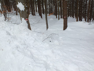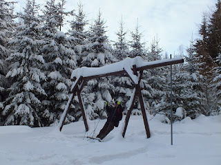 Wąską,wydeptaną ścieżką w śniegu docieramy do miejsca gdzie rośnie nasze "szklane drzewo"-a dlaczego szklane?,to można zobaczyć tu: