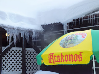 Niestety,dziś nie ma "szklanego drzewa",za to mamy okazję podziwiać jak zamarzała spadająca z wysokości woda Mumlavy.I znów robimy całe mnóstwo zdjęć,podziwiając piękno tegoż miejsca :)