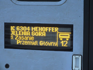 I tradycyjna kolejowa mieszanka.Nasz pociąg ma odjazd z peronu III,z jedynego aktualnie peronu,z którego można pojechać w dwóch kierunkach-stacja jest cały czas jeszcze w remoncie-ale akurat na nim jest podstawiony pociąg InterCity "Mehoffer" jadący do Przemyśla Głównego,który ma odjazd o 8:34.Nasz przyjedzie z Wrocławia i powinien wjechać na tor przy peronie III-właśnie ten zajęty-z którego ma odjazd o 8:20 do Szklarskiej Poręby.Zdajemy sobie sprawę,że tamtego pociągu nie przestawią,za to nasz zostanie skierowany na inny tor,na innym peronie.W tej sytuacji zostaje na uprzedzić zapowiedź i przejść na peron IV.Kiedy już to zrobimy,z megafonu słyszymy komunikat zapowiadający wjazd pociągu-naszego-"....wyjątkowo na tor przy peronie IV...".Ubawiło nas słowo "wyjątkowo"-bo to wyjątkowo dzieje się dwa razy w tygodniu-sobota i niedziela....Nic to! Najważniejsze,że z Jeleniej Góry wyjeżdżamy punktualnie i dzięki temu mamy szansę przesiąść się w Szklarskiej Porębie i dojechać tam gdzie chcemy.Kiedy "Szrenica" przyjeżdża,wsiadamy,zajmujemy wygodne miejsca i jedziemy.