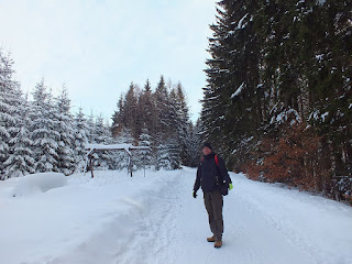 Po bardzo długiej sesji zdjęciowej nad Mumlavou,powoli zmierzamy ku drodze.Brniemy w bardzo głębokim śniegu,zapadając się co chwila,ale jakoś dajemy radę stanąć na ubitym śniegu,na asfaltowej ulicy.Wracamy nią powoli do Harrachova.