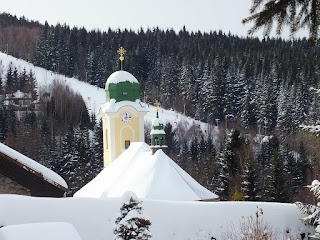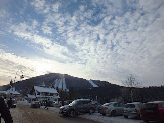 Wedrujemy chodnikiem wzdłuż głównej ulicy Harrachova.Nogi nam się rozjeżdżają w zmrożonym śniegu wymieszanym z solą.Rozglądamy się dookoła,robimy zdjęcia,rozmawiamy i cieszymy się że tu jesteśmy razem.