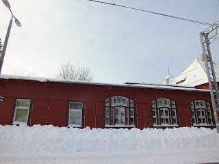 Przez jakiś czas wędrujemy bocznymi uliczkami,unikając rozdeptanego śniegu na chodnikach,ale niestety takie chodzenie się kończy i znów idziemy w breji śnieżno-solnej,a nogi rozchodzą się na boki.Oj ciężko się idzie,oj ciężko.Docieramy tak do przystanku autobusowego koło huty szkła.Sprawdzamy rozkład jazdy i stwierdzamy,że mamy bardzo dużo czasu więc postanawiamy nie czekać na busika,a pójść na stację kolejową pieszo.