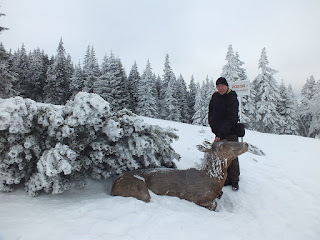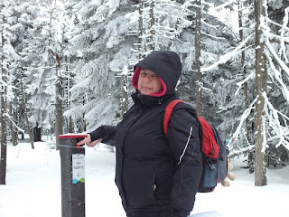 Wędrujemy niespiesznie śnieżną,piękną krainą.Pani Zima cudownie przystroiła Karkonosze.Jestem zachwycona pięknem,które mnie otacza,robię całe mnóstwo zdjęć,radując się z każdego.I tak docieramy do Skalnego Stołu.Byłam już tu kiedyś z Radkiem,a było to tak :