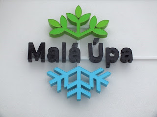 Podróż mija nam szybko.Wysiadamy w Malej Úpie i idziemy do punktu informacji turystycznej.Kiedy tam zmierzamy,zatrzymuje sie samochód i słyszymy,że ktoś nas woła.Radek podchodzi do auta.Okazuje się,że to Ela z Jarkiem,jadą sprawdzić trasę dla Janusza.Radek chwilę z Nimi rozmawia,a kiedy odjeżdżają,wraca do nas i wszyscy wchodzimy do punktu informacji turystycznej.Tu stemplujemy wszystkie nasze kajety,korzystamy z toalety i bierzemy folderki,a po dopełnieniu formalności ruszamy na szlak.