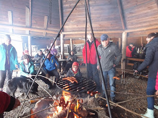 Docieramy do miejsca gdzie droga rozdwaja się i niebieski szlak skręca w lewo,ku kaplicy św.Anny,a bezszlakowa droga kieruje ku Domowi Wczasowemu "Lubuszanin".Chwilkę czekamy na rajdowiczów,a kiedy dotrą do nas,to schodzimy ze szlaku i idziemy w kierunku Lubuszanina.Przechodzimy obok niego i wędrujemy na polanę usytuowaną za Domem Wczasowym.Tu znajduje się wielka wiata ze stołami i ławami,z miejscem na ognisko i grilla.Wchodzimy do wiaty,rozsiadamy się wygodnie przy jednym ze stołów,wyjmujemy z plecaków jedzenie i zaczynamy biesiadować.