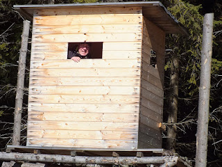 Na skraju lasu,Radek dostrzegł ambonę myśliwską,więc od razu postanowił wejść na górę,a ja zostaję na dole i robię zdjęcia.Po sesji zdjęciowej podchodzimy do dziurkacza i dopełniamy formalności,dziurkując swoje mapki i focac przyniesioną butelkę piwa.Oczywiście mamy przy okazji niesamowitą frajdę :)