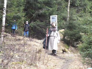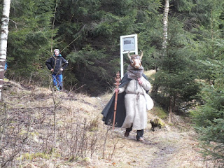 Po dość długich i wyczerpujących sesjach zdjęciowych,legendarna postać opuszcza Budniki,obiecując że już całkiem niedługo znów tu powróci.Pani Jadzia-budnikowska poetka,przeczytała zgromadzonym przez siebie napisany wiersz,piosenkę i petycję do Pani Burmistrz Kowar w sprawie zabezpieczenia przejścia przez Malinę.Nagrodzona za to została brawami zgromadzonych w Budnikach turystów i prezentem :) My po zrobieniu zdjęć i krótkich,bardzo krótkich rozmowach,powoli zaczynamy się zbierać do drogi powrotnej.