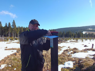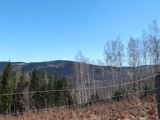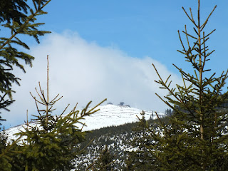 Po bardzo długiej sesji zdjęciowej,spoglądamy jeszcze na Śnieżkę,która co jakiś czas ukazuje swe piękne i tajemnicze oblicze i powoli ruszamy dalej :) Wędrujemy niespiesznie rozkoszując się ciepłem promieni słonecznych i pięknem,które nas otacza.Leśna droga wyprowadza nas na odkrytą stronę Haidy.Stąd mamy widok na Kravi Hore-byliśmy na niej dwa tygodnie temu,a było to tak: