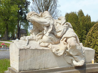 Przystajemy przy przepięknej rzeźbie,oglądamy,robimy zdjęcia i obchodzimy ją dookoła.Po sesji zdjęciowej powoli opuszczamy cmentarz i idziemy w kierunku centrum miasta.