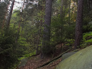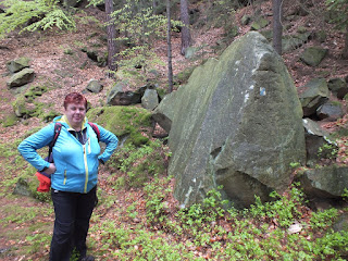 Wędrujemy zielonym szlakiem przez las.Trochę kropi,ale nie aż tak,żeby nas zniechęcić.Pniemy się ku górze szeroką wąwozową,malowniczą ścieżką.Omijamy kałuże,chłoniemy ciszę i spokój panujący dookoła,robimy zdjęcia i radujemy się swoim towarzystwem :)