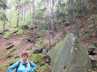 Wędrujemy zielonym szlakiem przez las.Trochę kropi,ale nie aż tak,żeby nas zniechęcić.Pniemy się ku górze szeroką wąwozową,malowniczą ścieżką.Omijamy kałuże,chłoniemy ciszę i spokój panujący dookoła,robimy zdjęcia i radujemy się swoim towarzystwem :)