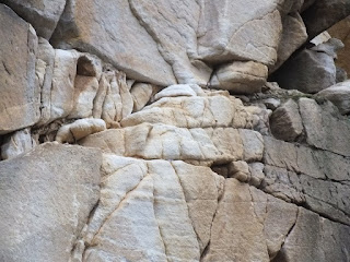 Kiedy ścieżka nagle ostro zakręca i zaczyna schodzić w dół,Radek nie dostrzegając oznaczenia szlakowego zwątpił i zaczynamy wracać do zakrętu.Tu ewidentnie szlak nakazuje skręcić,schodzimy więc.Idziemy gęsiego,bo ścieżka jest wąska i biegnie zboczem.Oboje dochodzimy do wniosku że mogłaby być lepiej oznaczona.Idziemy nią w dół.Tu gdzieś powinny być Białe Skały.Jak na razie to ich nigdzie nie dostrzegamy.